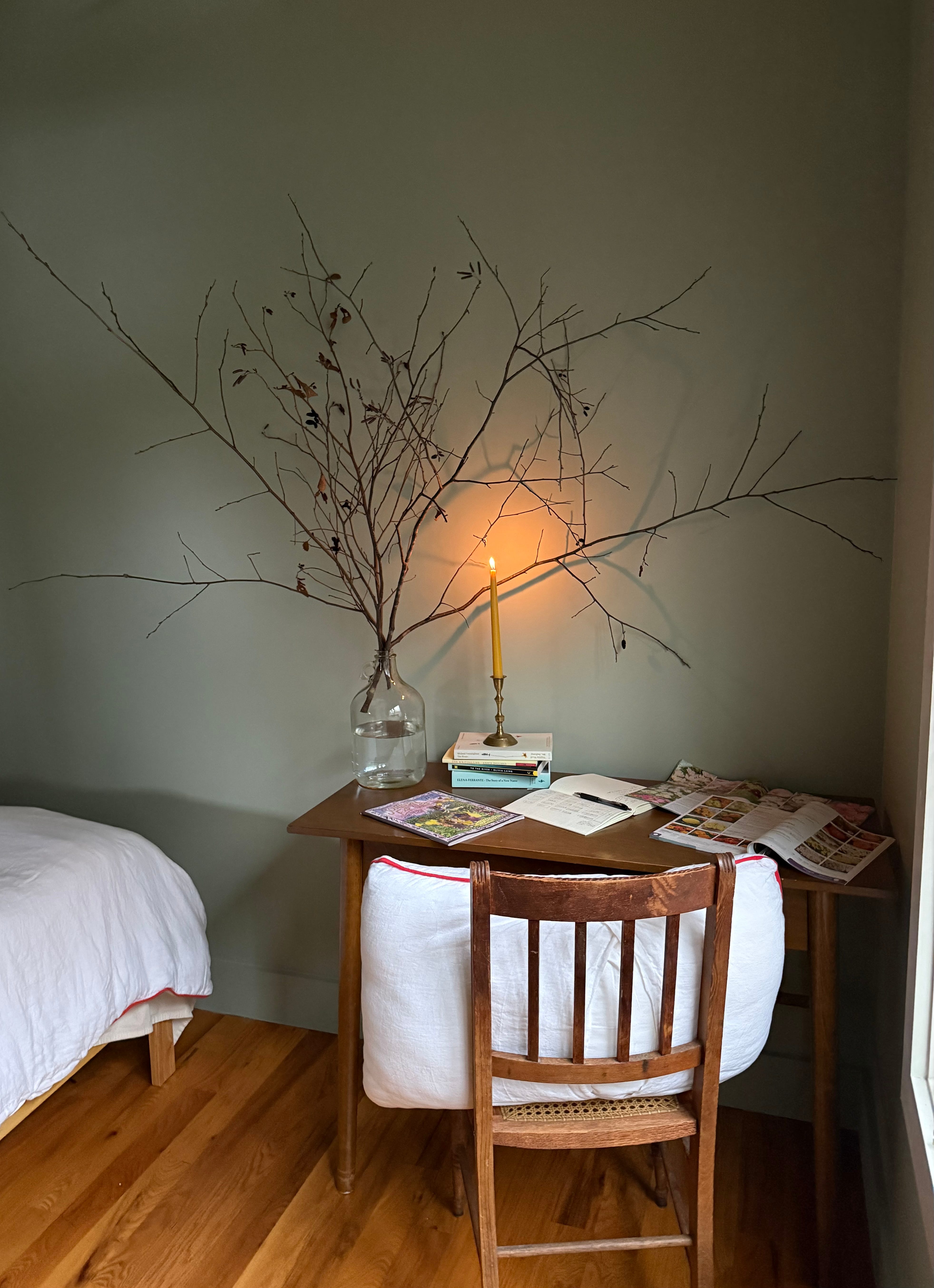 I write to you now at my desk, birch branches gathered from the lake propped in a glass jug, their catkins dangling above me. Seed catalogs are spread all around, dog-eared, notes in the margins. Outside, the garden is dormant. Inside, something is beginning.